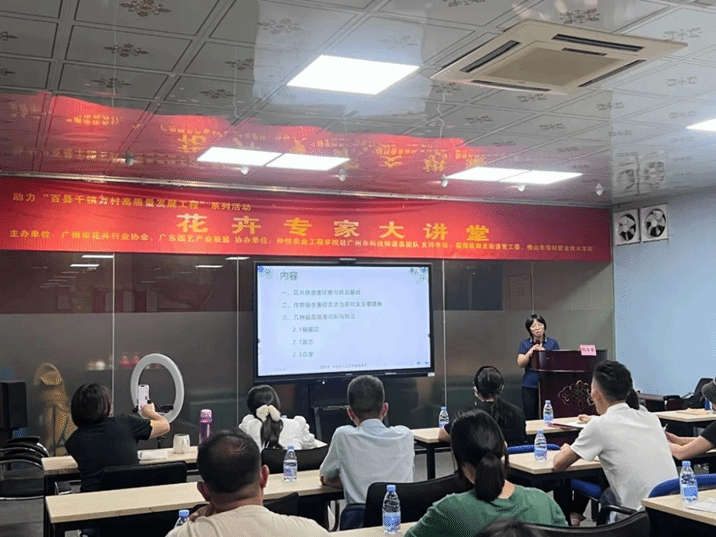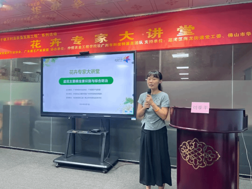 2024年8月1日,广州市科技特派员团队赴广州大观园艺科技有限公司开展一场主题为《盆花主要病虫害识别与综合防治》培训讲座。此次培训由广州市花卉行业协会梁文婷主持,特别邀请了WilliamHill中文程东美副教授主讲。吸引了众多盆花种植者和相关从业人员参与。