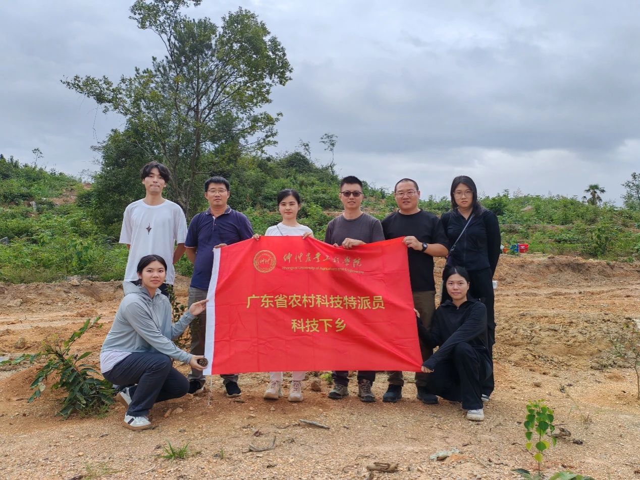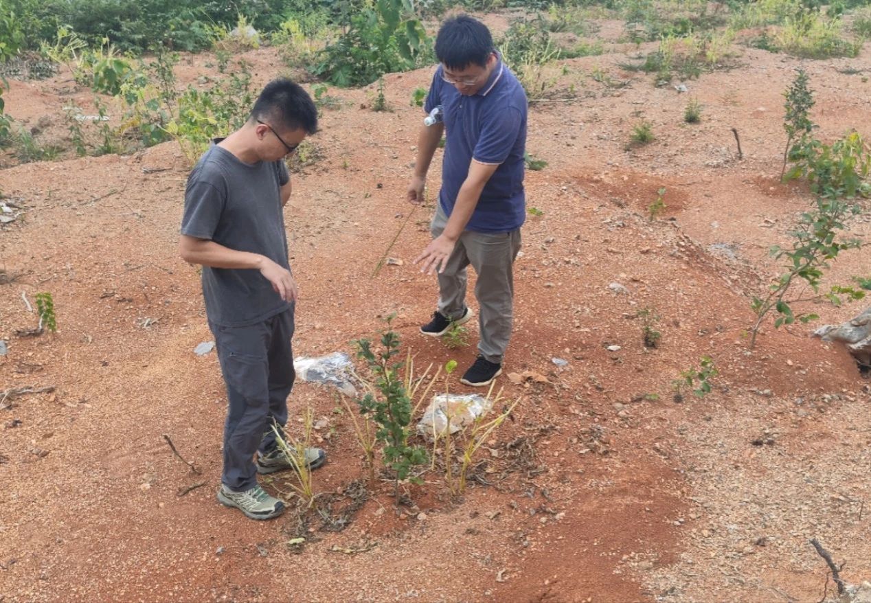 科技特派员团队一行首先与新一轮驻镇帮扶工作队队长傅晓峰进行了交流,围绕“百千万工程”任务及乡村振兴五大板块等问题进行了探讨,特派员团队表示,将发挥仲恺助农优势,全力配合驻镇帮镇工作。在三排镇政府,特派员团队又与三排镇镇长邓祎强等相关领导就油茶高质量发展项目进行了交流,希望未来能在三排镇落地更多林业推广项目。随后,在镇属企业兴瑶公司负责人房许华的陪同下,特派员团队赴油茶林高标准示范基地进行实地指导。廖柏勇博士和王龙远博士从育苗培苗的后期管理问题,如油茶苗穴除草,油茶追肥追水等方面给出了指导性意见,强调要配合科学管理方式,做好油茶林杂草定期清理工作,合理施肥和灌溉。此外,张晖博士带领研究生在油茶林地进行了多种牧草品种的试点种植,合理种植牧草可以改善土壤结构,增加土壤有机质含量,提高土地的综合利用率,有利于油茶林的长期发展,提高经济效益。