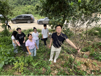 接着,科技特派员团队来到广东省鑫华林业科技发展有限责任公司,负责人温沃康先生带领我们走访三华李、沉香树、南药等经济作物种植基地。通过逐一实地走访,科技特派员团队精准识别了困扰作物的病虫害问题,其中较为严重的是三华李种植过程中存在实蝇和蓟马等虫害影响果品、沉香树种植中存在吊丝虫取食叶片影响光合作用等。科技特派员团队后续为该公司“量身定制”一套高效、绿色的三华李和沉香树综合防控技术方案,助力提升作物品质与产量。