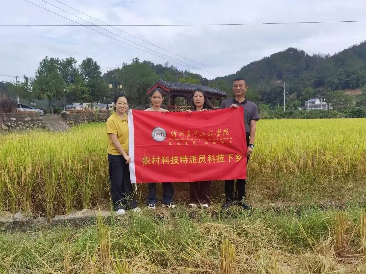 科技特派员团队一行首先到达青溪镇溪口村实地调研,到灌浆成熟期的杂交水稻田和30多亩新引进紫色稻米品种田里指导水稻灌浆成熟期的田间管理,包含间歇灌溉法的水分调控;适量喷施磷酸二氢钾或尿素+磷酸二氢钾混合液,防止早衰,提高生育期后期叶片的保绿性,提高结实率和千粒重;重点稻飞虱、稻纵卷叶螟、稻瘟病、纹枯病、白叶枯病等进行病虫害防治;科学用水及时排灌预防倒伏,并且注意避免过早断水或过量施肥,防止贪青晚熟或根系早衰。