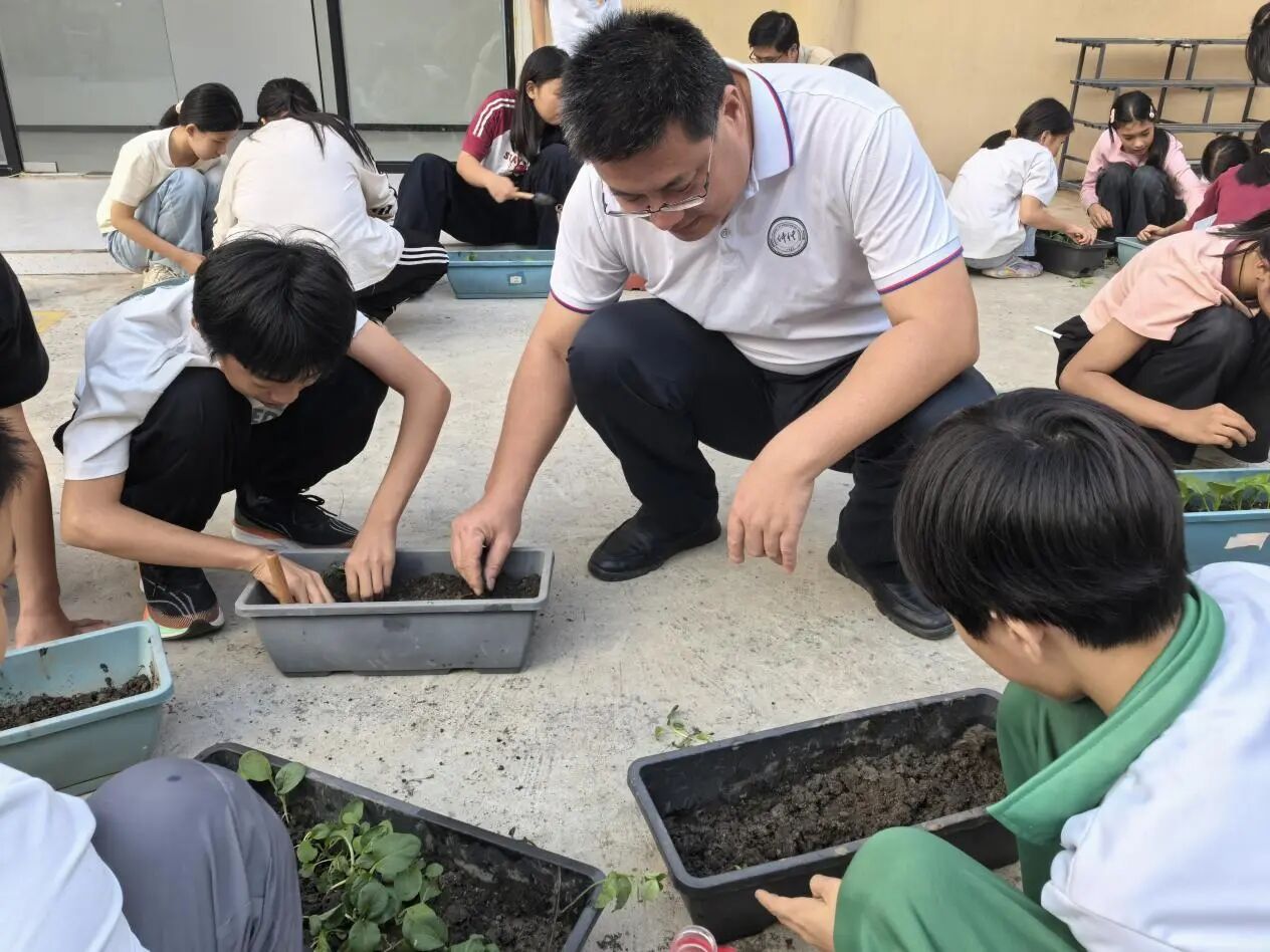 在仙城镇党群服务中心持续开展的“四点半”课堂中,特派员团队与20余名学生亲切互动,一起观察作物生长情况,针对不同学生作物生长差异悬殊的现状,特派员团队实时传授学生们农作物间苗、补种、除草、除虫等种植和管理技术,并带领学生们一同平整土地,补种蔬菜。