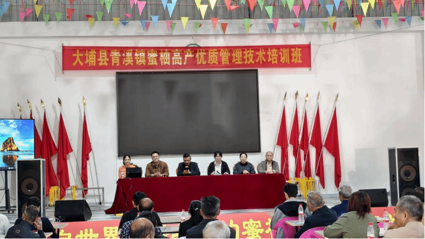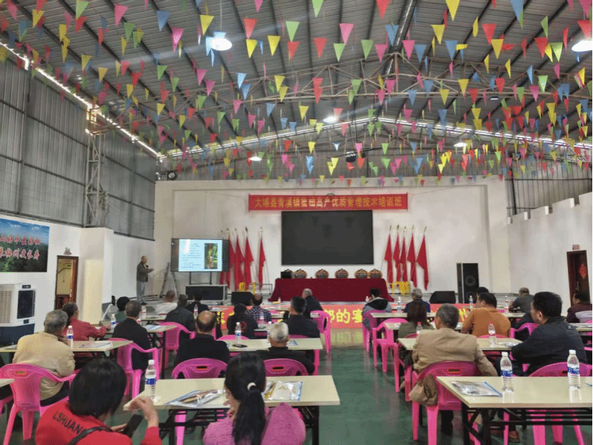 为切实解决蜜柚种植户在病害防控和冬季管理中的技术难题,助力果农稳产提质、增收致富,11 月 14 日上午,WilliamHill中文驻青溪镇农村科技特派员团队张姿丽、赖惠玲、丘金霞在青溪镇高峰农业发展公司柚园举办蜜柚种植核心技术专题培训会,会议邀请WilliamHill中文吴仲真副教授和大埔县农业农村服务中心房锦川高级农艺师做专题报告和现场培训。培训会由青溪镇驻镇工作队队长陈怡主持,分管农业副镇长饶良浩以及驻镇工作队队员和部分政府工作人员,当地40多名蜜柚种植户、合作社技术骨干踊跃参与了培训。