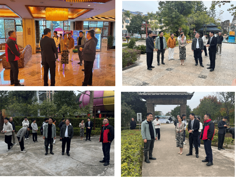 在叶园温泉旅游区,经园区负责人介绍,调研团队了解了温泉资源开发、文旅项目运营及游客服务体系建设等情况。张眉院长就如何进一步提升温泉品质、丰富休闲业态、打造特色康养品牌等方面提出多项建议,强调应结合当地生态与文化资源,推动“温泉+农业”“温泉+研学”等融合发展模式。
