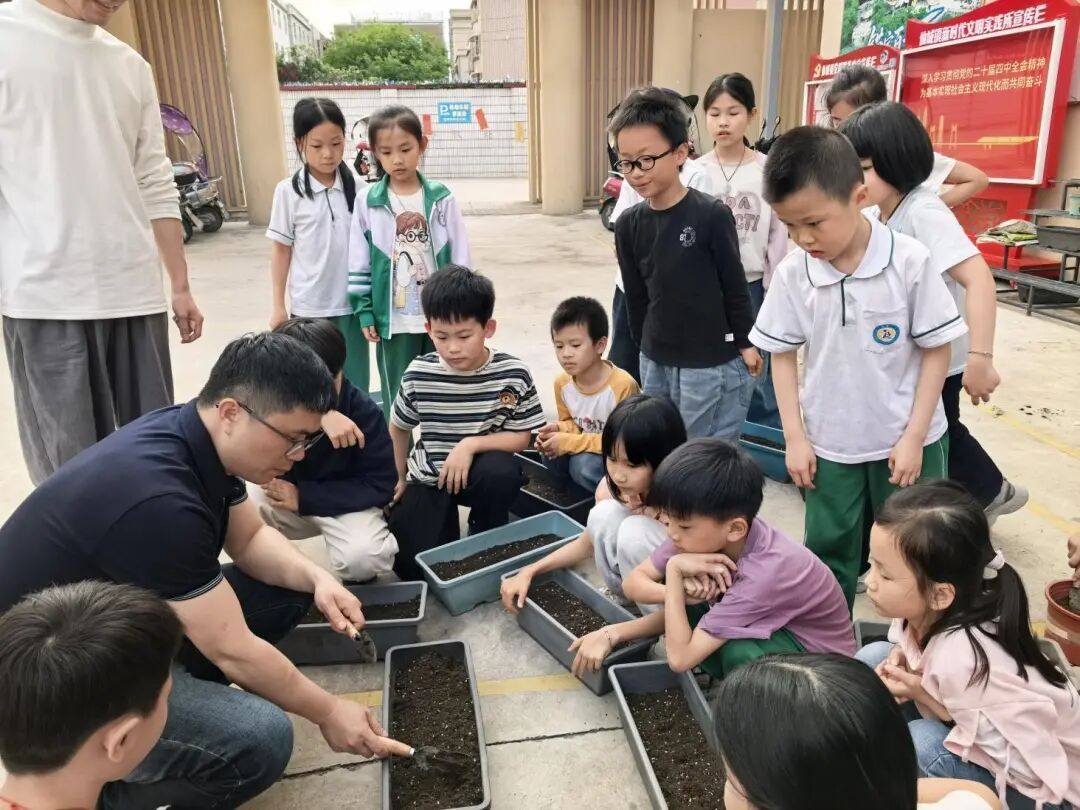 在仙城镇党群服务中心,新学期的“四点半课程”开课了,在孩子们好奇的目光中,王兴才博士手把手指导松土、播种、浇水,将书本上的自然知识转化为生动的劳动体验,孩子们收获满满,纷纷表示要照顾好自己种下的希望种子。随后,团队实地调研了榕堂小学科普教育种植基地及仙城镇第一幼儿园教育实践基地,详细查看基地规划与作物生长情况,特派员团队指出要结合时令季节,种植当季蔬菜瓜果等农作物,优化作物生长环境,设计合理研学课程,充分利用基地开展常态化的科普教育工作。
