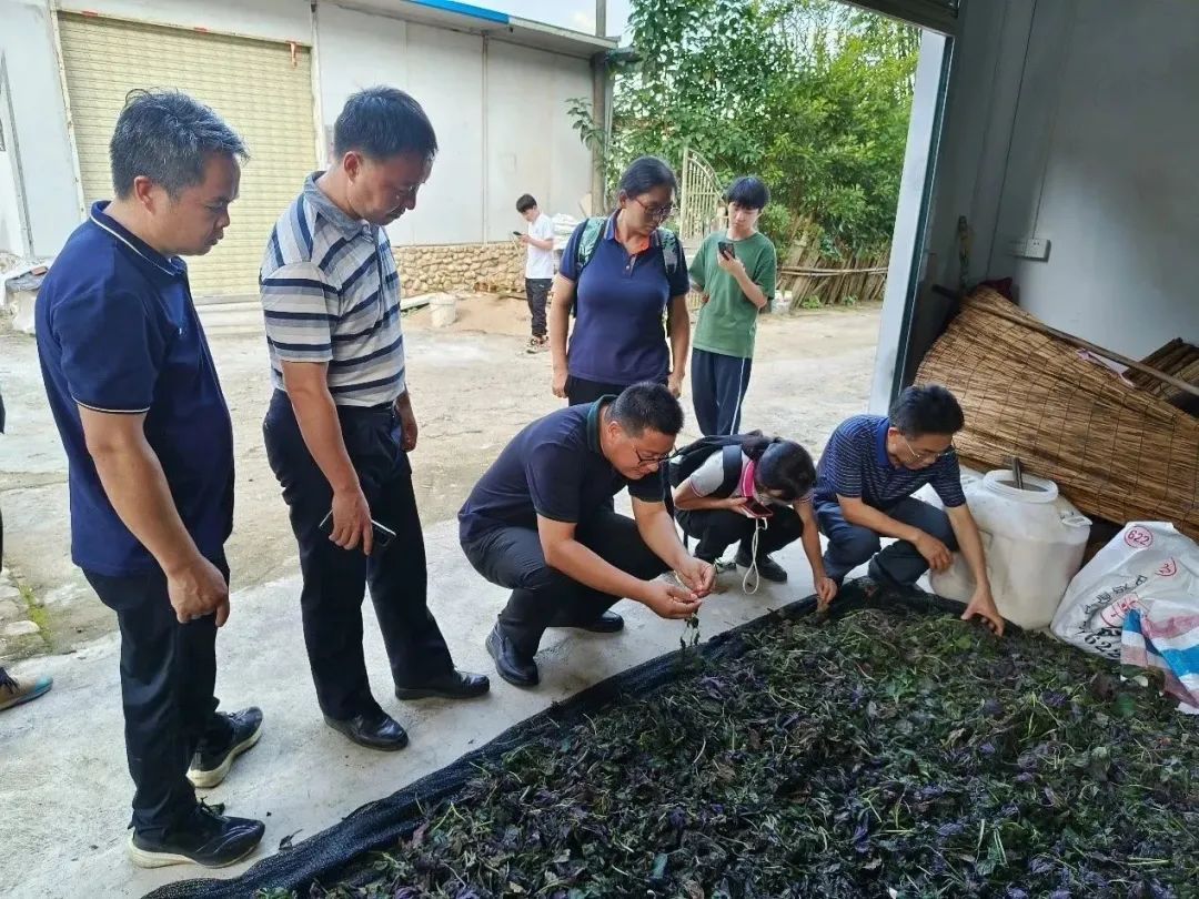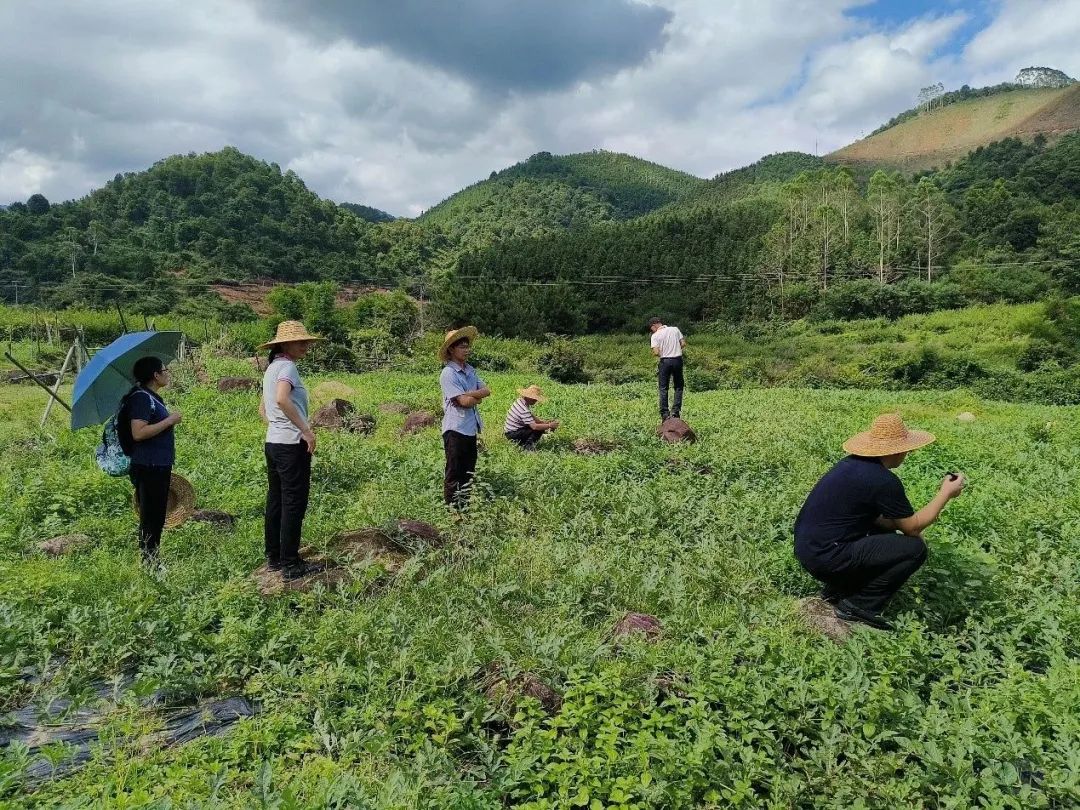 在甘薯种植基地,团队成员发现杂草问题很严重,认为这是因为种植管理过于粗放导致,建议在种植前一周用除草剂处理田地再进行种植,并提出当务之急是做好秋种甘薯的准备工作。