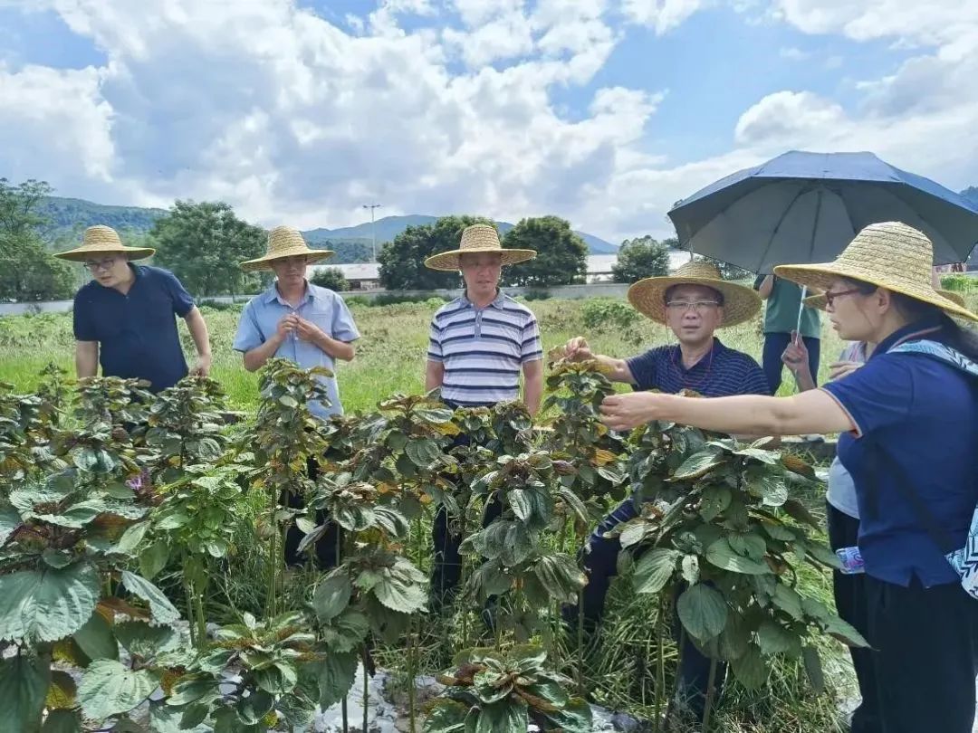下午,农业科技培训团队继续深入到各个种植示范基地进行现场观察,组织农户进行现场指导。在紫苏种植基地,发现紫苏因近期高温高湿,锈病发生严重,当前天气晴朗新叶没有发现问题。高温高湿天气要特别注意防治锈病,锈病通过打药预防,而且只能防不能治。