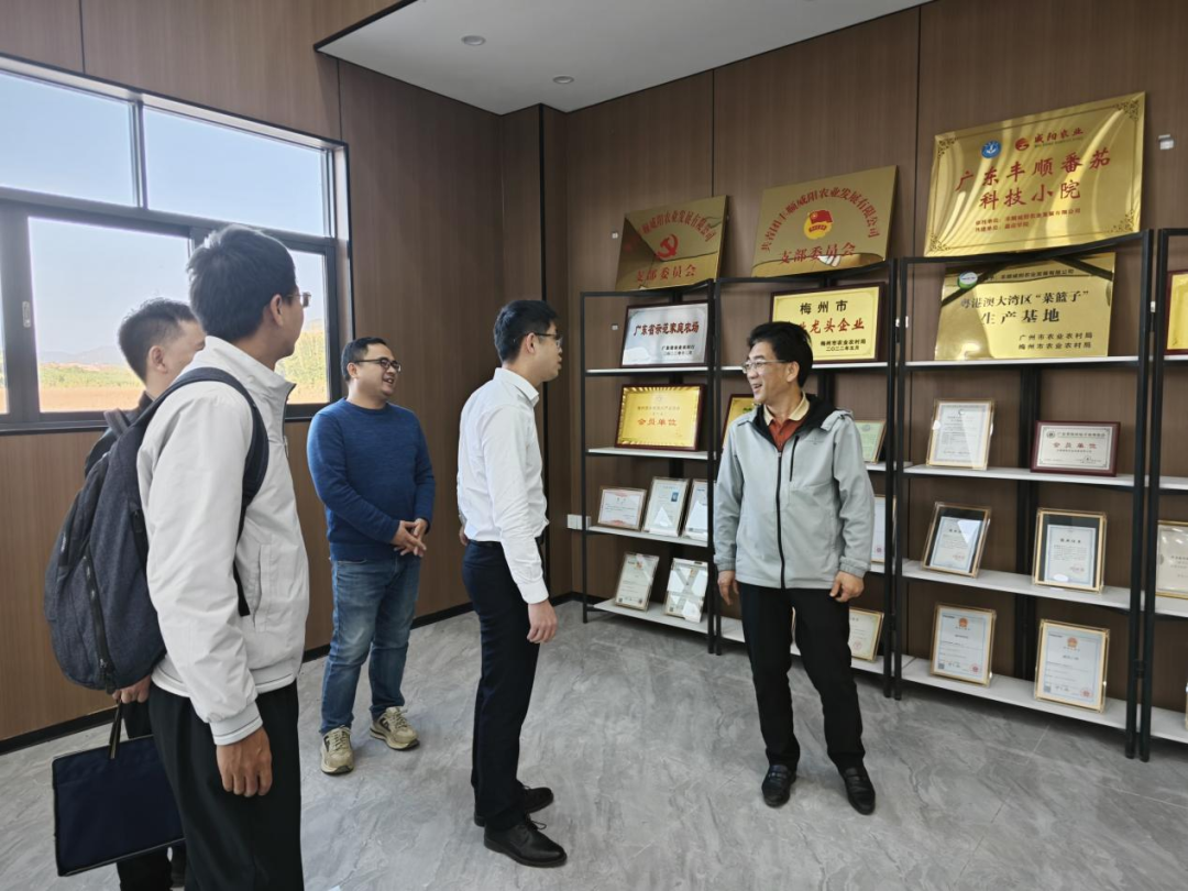 会谈后,在驻镇帮扶队队长徐增辉的陪同下,调研组成员走访了丰顺威阳农业发展有限公司,详细了解该公司的发展情况以及公司在种子培育、种植技术等方面的需求。孙昀皓团队确定两位在读研究生将于今年3月开始,长期驻扎当地,开展实地研究与应用推广工作。