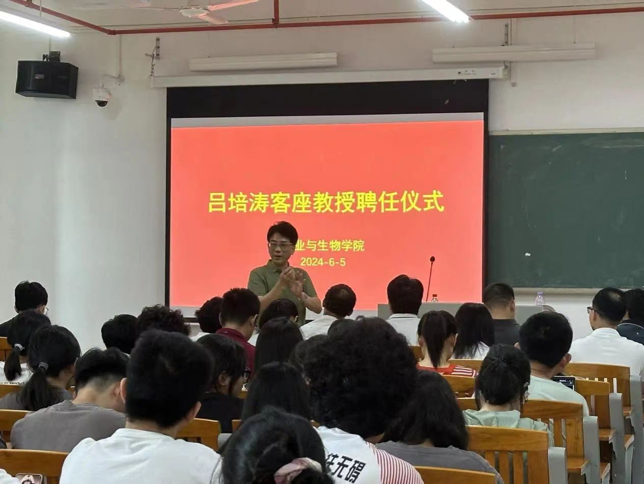 为开阔学生学术视野,进一步激发农生学子的科研热情,6月5日上午,william威廉中文在生命科学大楼A座511室举行了主题为“染色质修饰与果实品质:香蕉成熟调控的分子基础”的农生大讲堂专题讲座。本次讲堂由客座教授吕培涛主讲,吸引了众多农生学子前来聆听。出席本次活动的还有学院党委书记周超雄、副院长(主持工作)喻国辉、副院长徐彪、何生根教授等众多教师代表以及辅导员李城、梁定超。讲座由喻国辉主持。
