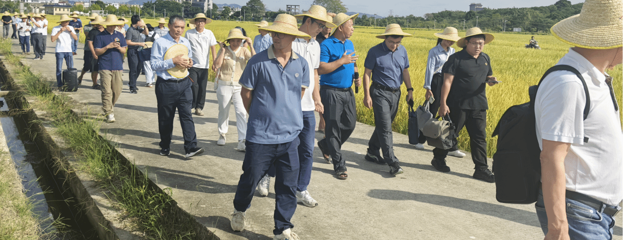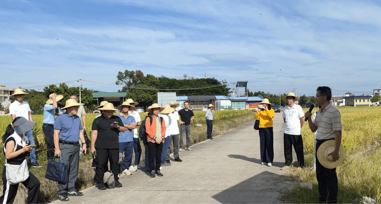 现场观摩交流环节,我校知名老专家、省“揭榜挂帅”项目骨干成员、省花生大豆产业技术体系首席专家、揭阳市现代种子产业创新服务中心兼职首席专家郑奕雄教授介绍了粮油示范基地合作共建情况;省农科院水稻研究所王重荣研究员逐一介绍了展示示范的水稻新品种,普宁市立坤农业专业合作社社长梁立坤介绍了合作社农机托管业务及示范基地配套的水稻全程机械化生产技术。