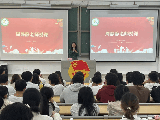 首先由周静静老师进行主题为“党的性质和宗旨及入党流程”授课,周静静老师先是从我校省赛优秀视频作品为切入点,让同学们了解仲恺学生党员干部作风,接下来分别从“党的性质和宗旨”“入党流程”等2个部分分别展开叙述。