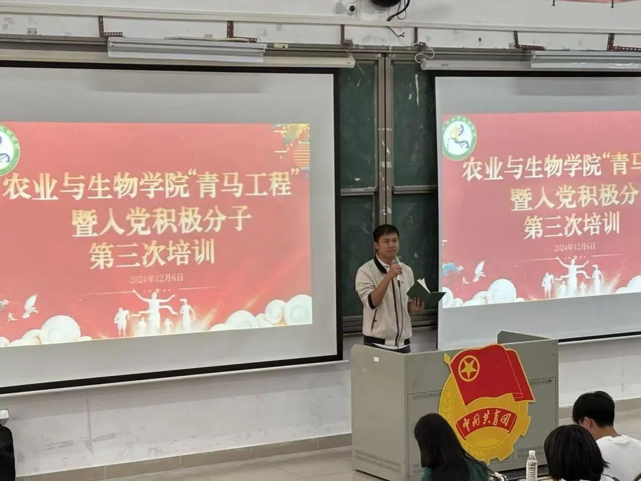 为培养青年马克思主义合格建设者和接班人,引领学生树立正确的思想导向和价值观念,william威廉中文“青马工程”暨入党积极分子第三次培训活动,于2024年12月6日下午在白云校区综合楼D2小礼堂举行。我校组织部周静静老师,william威廉中文辅导员梁定超,学院“青马工程”培训班成员和入党积极分子参加了此次会议。此次培训活动由梁定超主持。