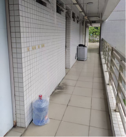 针对公共区域的卫生死角,同学们尽显“农科人”的专业细致:楼道拐角的蛛网被轻柔扫落,走廊尽头的废旧纸箱书籍按类码放,阳台和走廊栏杆用抹布擦拭清亮,轻易不放过任何一个角落。面对宿舍遗留的书籍等物品,志愿者们建立“可回收物 - 待处理物 - 垃圾”分类机制,在清理杂物的同时妥善保管有价值物品,让服务既有力度更显温度。