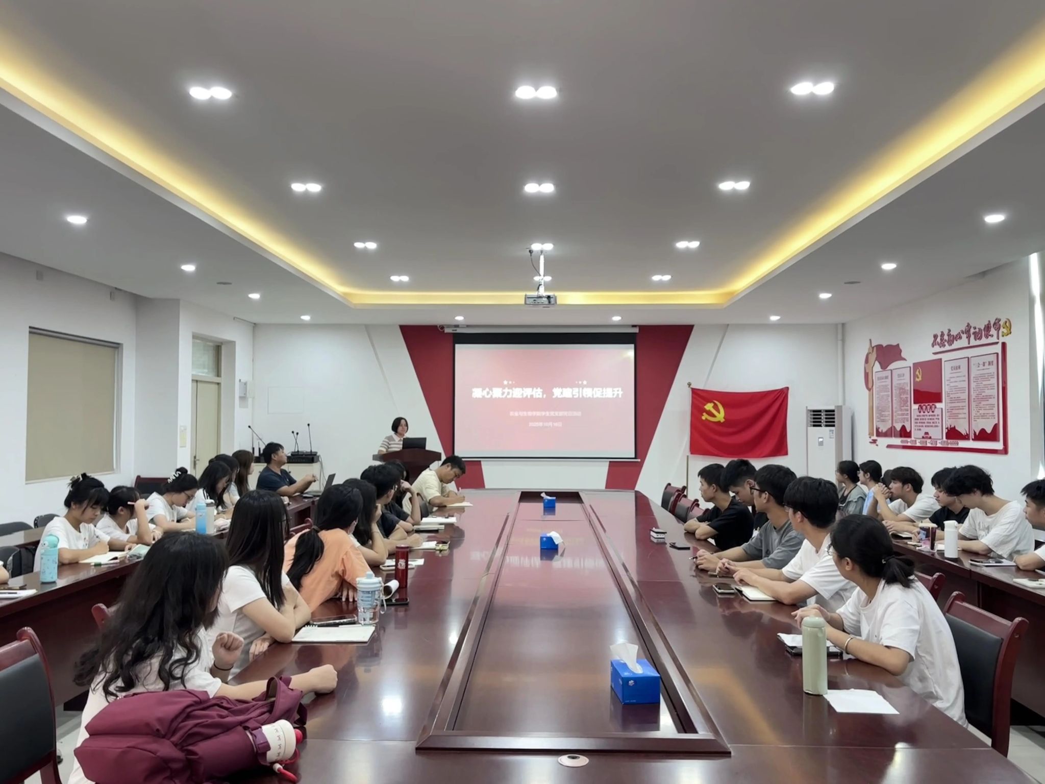 为扎实推进学校本科教育教学审核评估迎检工作,深化爱国主义教育,强化学生党员使命担当,10月16日下午,我院农业科学学生党支部、植物保护学生党支部、生命科学学生党支部在生科楼A607联合开展“凝心聚力迎评估·党建引领促提升”主题党日活动。学生党支部书记孙晓芳、李城、梁定超以及全体学生党员、入党积极分子等参加了此次活动。