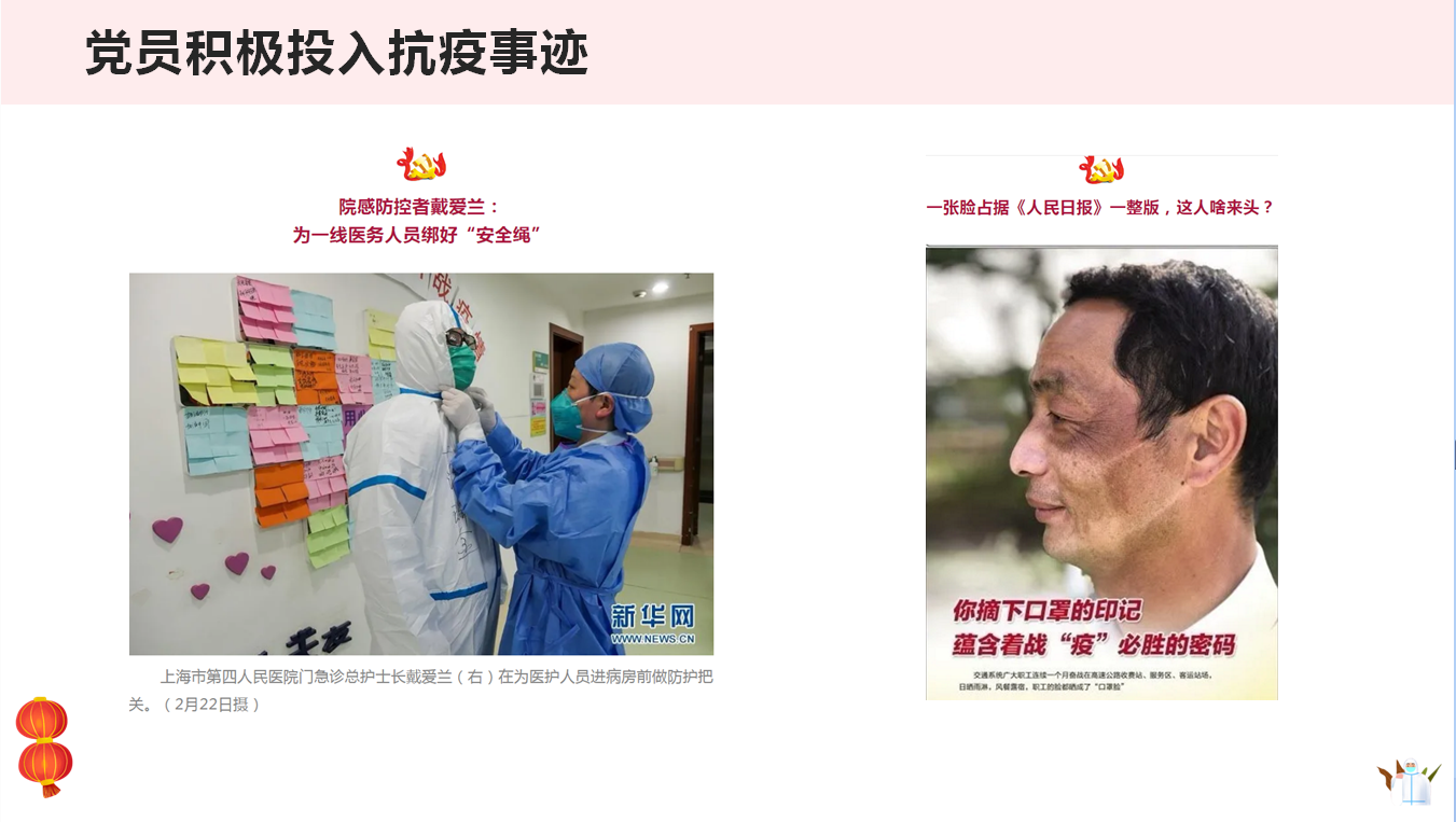 “疫”线党课,让防疫期间的党员活动鲜活起来。以先锋之号召,强责任之担当,显党员之本色,让党员们在学习交流中凝心聚力,提升战“疫”战斗力。让党徽在特殊时期闪闪发光!
