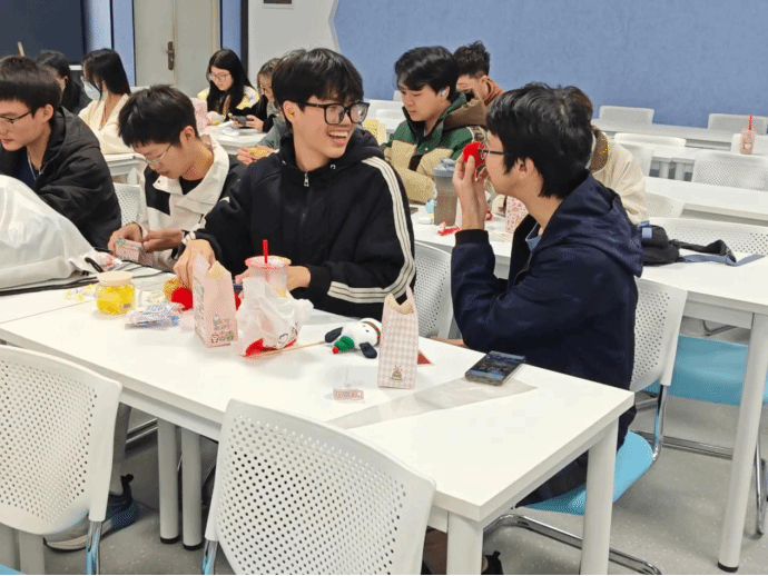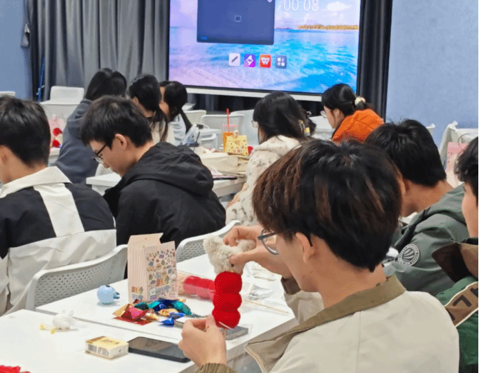团日活动的知识抢答与新春庆祝的手工安排在一起,放松身心在玩中学习。