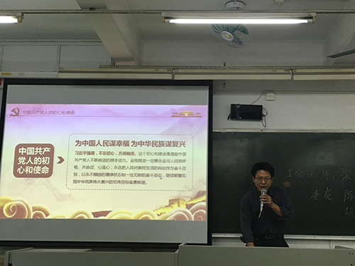 为进一步深入学习领会党的十九大报告,贯彻落实党的十九大精神,11月2日下午,我院教工党员在海珠校区205教室集中学习党的十九大报告精神。学院党总支书记陈丹雄做了题为“深入学习贯彻党的十九大精神”报告。
