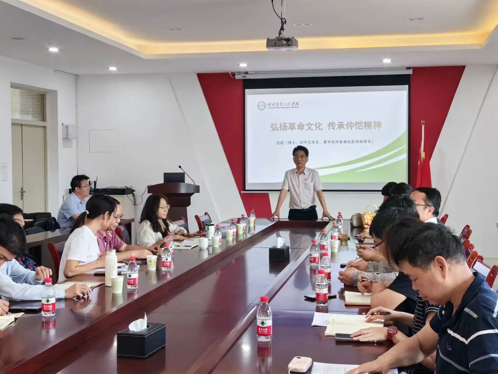 会上,刘斌从习近平总书记有关弘扬革命文化的讲话精神、从校史看学校的红色基因以及传承仲恺精神等三个方面深刻阐述了“仲恺精神”的概念,以“救国拯民,扶助农工;不畏牺牲,苦斗不屈;忠贞坦荡,克己奉公;勉学力行,进取担当。”总结了“廖仲恺精神品质”的主要内涵。他指出学习和弘扬仲恺精神,对广大的师生乃至每一个青年都具有重大意义。