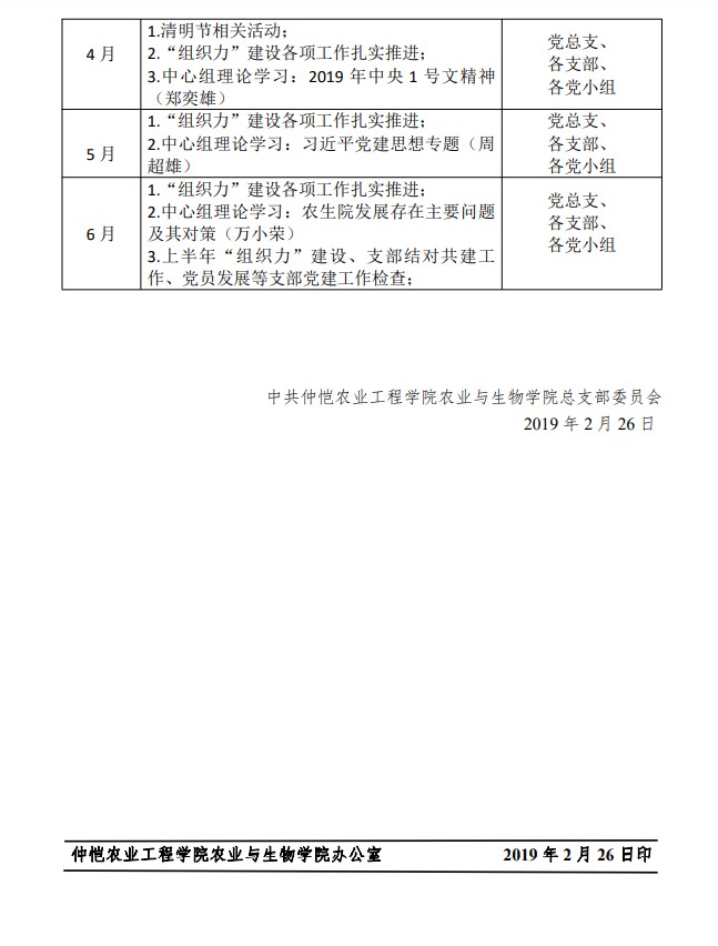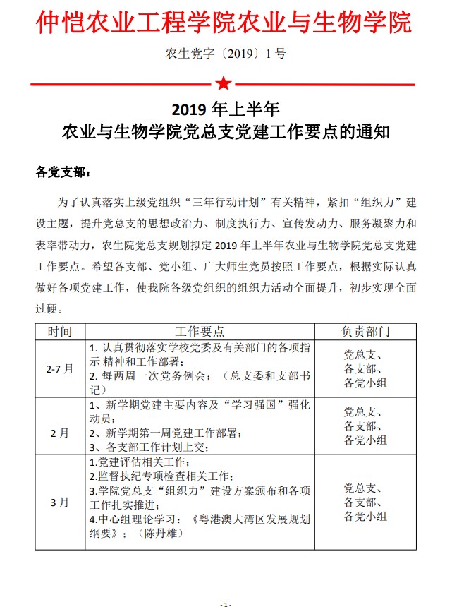 农生党字〔2019〕1号-2019年上半年william威廉中文党总支党建工作要点的通知