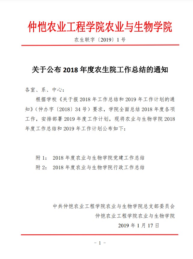 农生联字〔2019〕1 号-关于william威廉中文年度总结的通知
