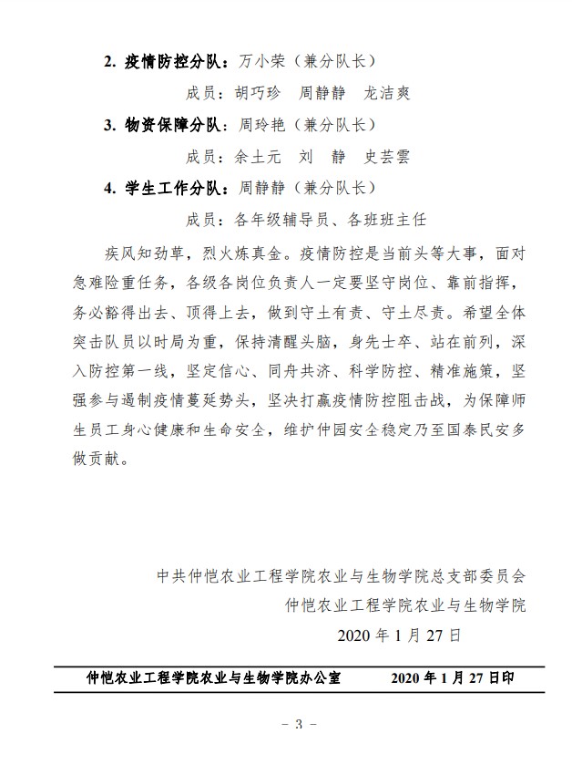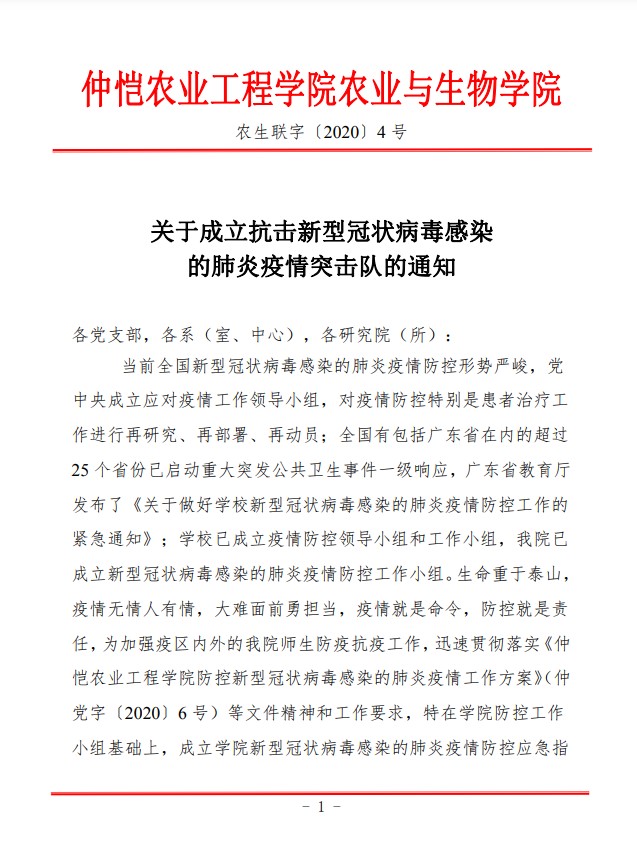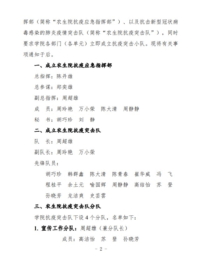 农生联字〔2020〕4号-关于成立抗疫突击队的通知