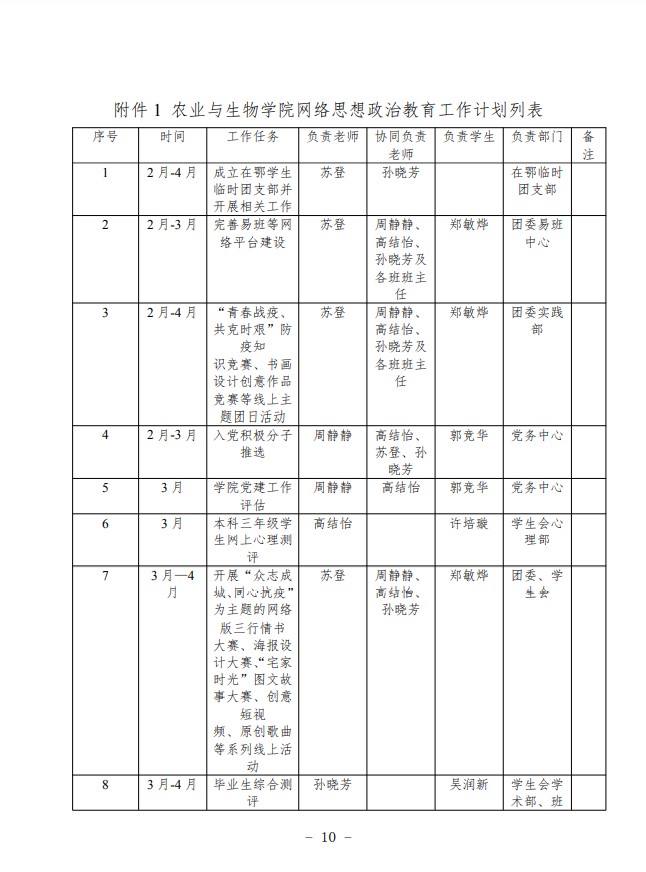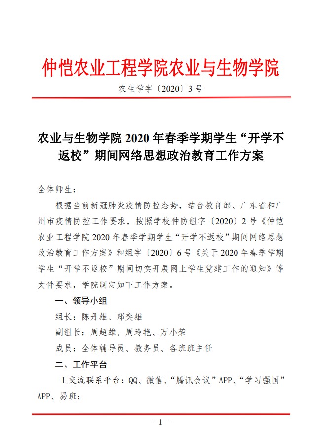 农生学字〔2020〕3号-william威廉中文2020年春季学期学生“开学不返校”期间网络思想政治教育工作方案
