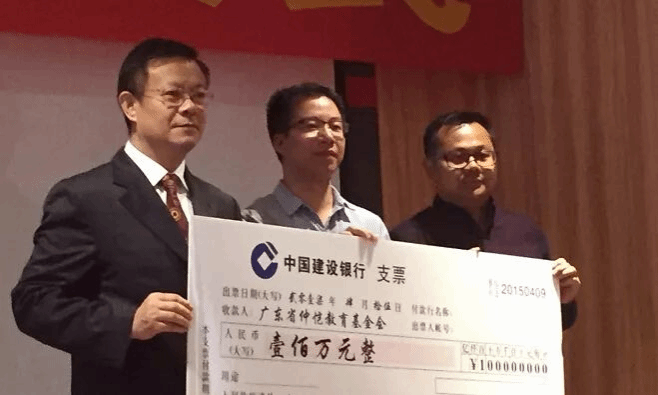 4月15日广州谱莱声音响设备有限公司总经理林海彬先生代表捐资百万元,授予“教育贡献奖”牌匾