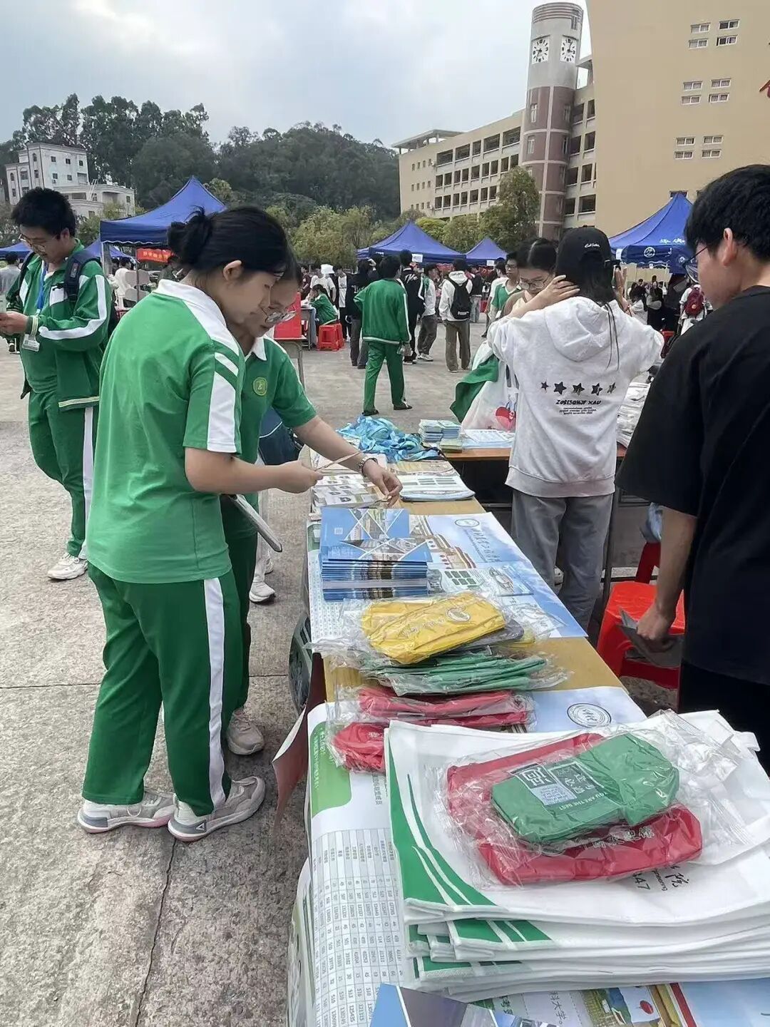 今日份的快乐,是看到绿色校服和仲恺白袋的完美同框!同学们提着仲恺的周边袋穿梭在市集,就是最好的宣传~