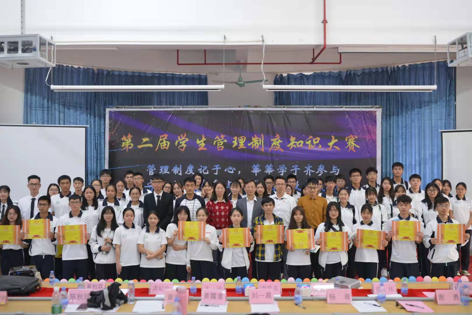 11月16日下午,由学生工作部(处)主办,学生事务管理服务中心承办,各二级学院协办的第二届学生管理制度知识大赛决赛在白云校区D1小礼堂隆重举行,我院派出的“农生全队”队伍在本次知识竞赛中荣获三等奖。