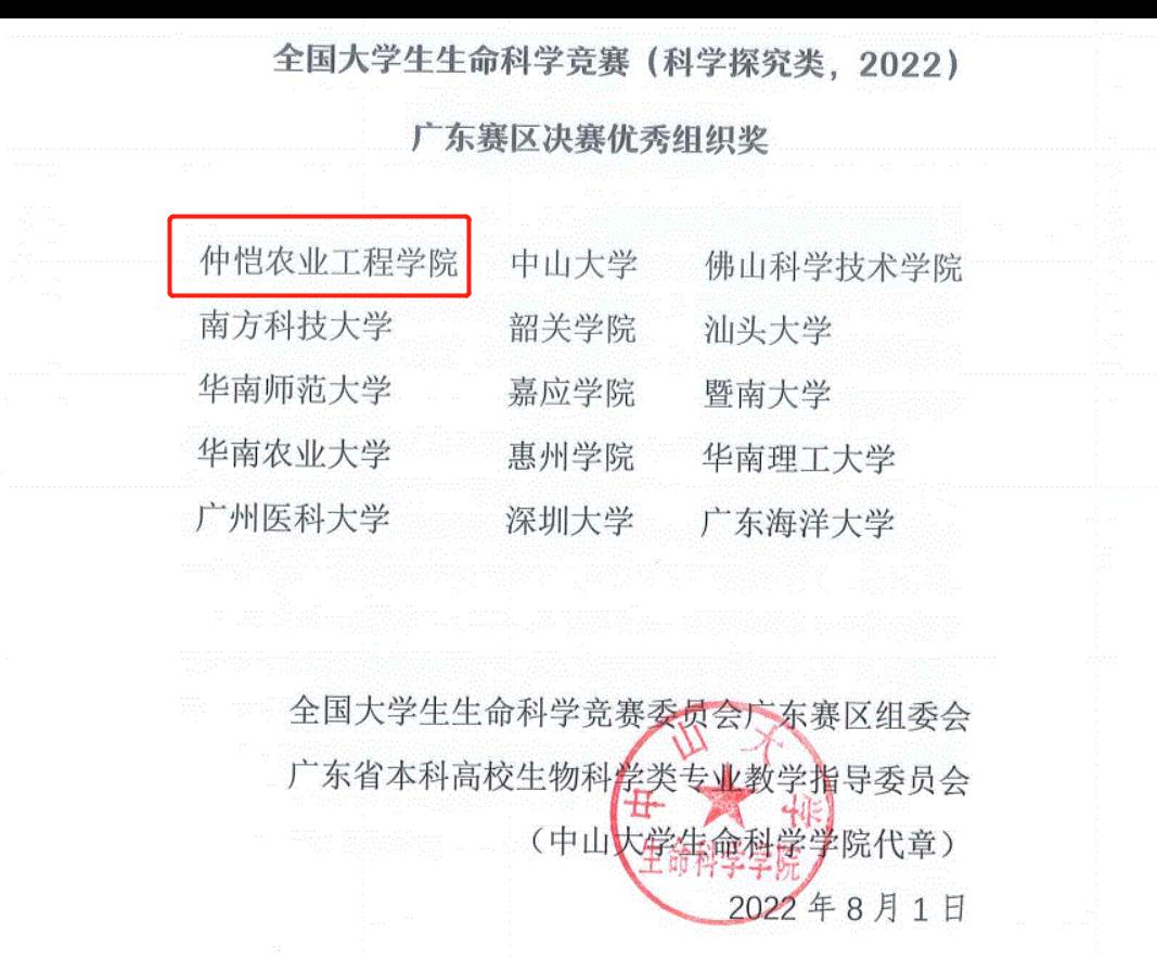 近日,全国大学生生命科学竞赛(科学研究类,2022年)广东赛区决赛在深圳大学成功举办。农业与生物学院学子在此次比赛中揽获佳绩,荣获一等奖1项和三等奖5项。同时,我校获得“优秀组织奖”。