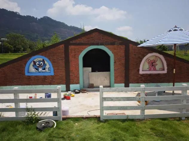 在全体队员的齐心协力、不懈努力下,下午两点钟,绘画工作完美收官。此次共完成7幅地绘、墙绘作品,总面积超过200平方米。原本单调乏味的农场道路和建筑,在队员们的妙笔生花之下,焕然一新,摇身一变成为了一条充满艺术气息的“文化长廊”。这些精美的画作宛如一颗颗明珠,镶嵌在乡村的土地上,不仅极大地提升了农场的文化氛围与视觉美感,更为当地打造了一张独具特色的乡村文旅新名片。