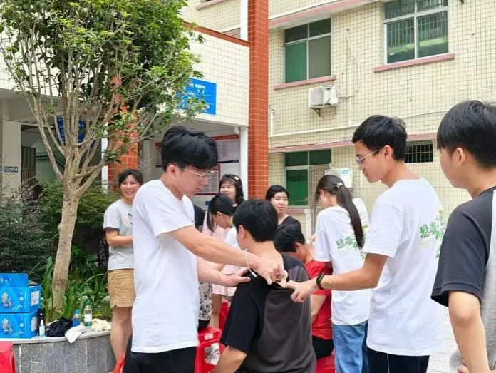 行动队队员们在现场根据老师指导,为村民提供刮痧、肩颈按摩等服务。队员们手法娴熟,先用精油涂抹,再以刮痧板轻柔操作,针对肌肉紧张、疲劳酸痛等问题进行重点调理。针对长期从事农活导致的腰肌劳损、肩周不适等问题,队员们还结合专业知识,为其提供专业的按摩服务。