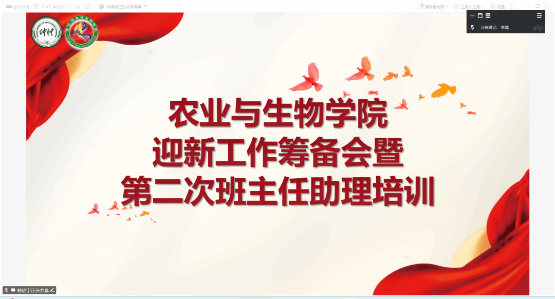为充分做好2025级新生入学准备工作,提升班主任助理团队服务能力,我院于7月25日晚通过线上平台召开2025级迎新工作筹备会暨第二次班主任助理培训会议。会议由25级新生辅导员李城主持并作相关工作安排,全体班主任助理参会。