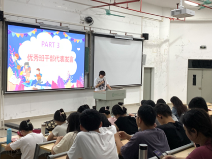 随后,中草药231班占文婷、生技231班刘钻等10位优秀代表依次上台分享班级管理中的收获、感悟与实用经验,还向支持班级工作的同学们表达谢意,为其他班干部提供了宝贵的借鉴思路。