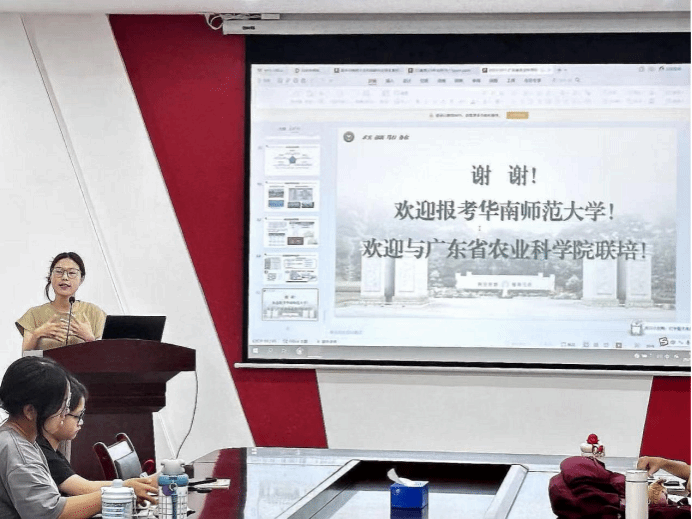 广东省农业科学院作为联培项目的重要合作方,凭借其在农业科研领域的深厚积淀,为该项目提供了强有力的实践支撑。宣讲中,省农科院蔬菜研究所李涛老师详细介绍了与华南师范大学联合培养项目的培养目标、课程设置、科研平台及就业优势,重点解读了“双导师制”特色——由两院专家共同指导,助力学生将理论知识转化为实际科研能力,培养更符合农业领域需求的复合型科研人才。