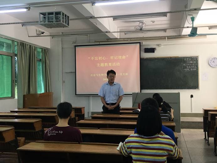 10月17日,我院教工第一党支部在海珠校区303室开展“不忘初心 牢记使命”主题教育党日活动。会上根据学院党总支的主题教育活动系统部署制定了下一阶段的活动安排,并再次深入学习领会习近平总书记给全国涉农高校的书记校长和专家代表的回信,激励了各位党员不忘育人初心,牢记教育使命。本次活动由支部书记韩群鑫主持,党总支书记陈丹雄及全体支部党员参加。