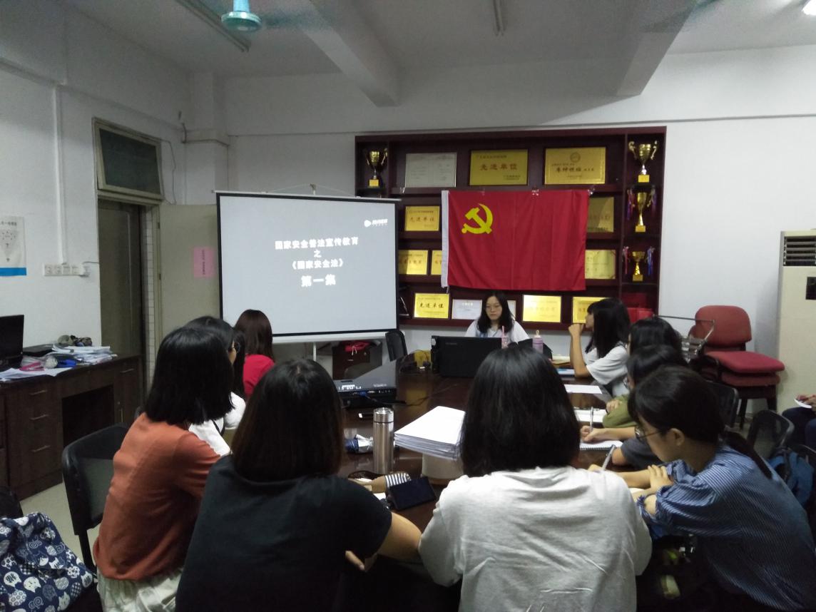 4月19日,我院党总支书记陈丹雄主持召开党务工作会议。会上,陈丹雄书记传达了关于开展2018年“全民国家安全教育日”系列活动的通知的文件精神,要求学院要高度重视,围绕主题,结合实际情况和师生特点,周密制定实施方案,充分调动师生的积极性、主动性和创造性,进一步夯实学校国家安全的思想基础。