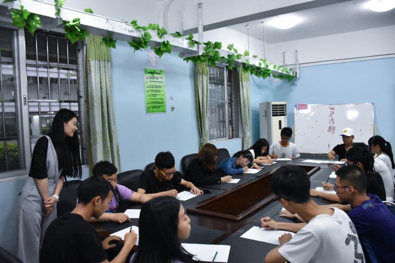 参观后,心理部干部们纷纷表达自己的看法,王汝婷老师建议心理部干部们在开展心理活动时,一切从同学们的需求出发,了解他们的心理状态,开展他们喜欢、感兴趣、并且会积极参与的活动。最后,王老师对心理部干部以房子、树木和人为主题画的一幅画进行了点评和分享。