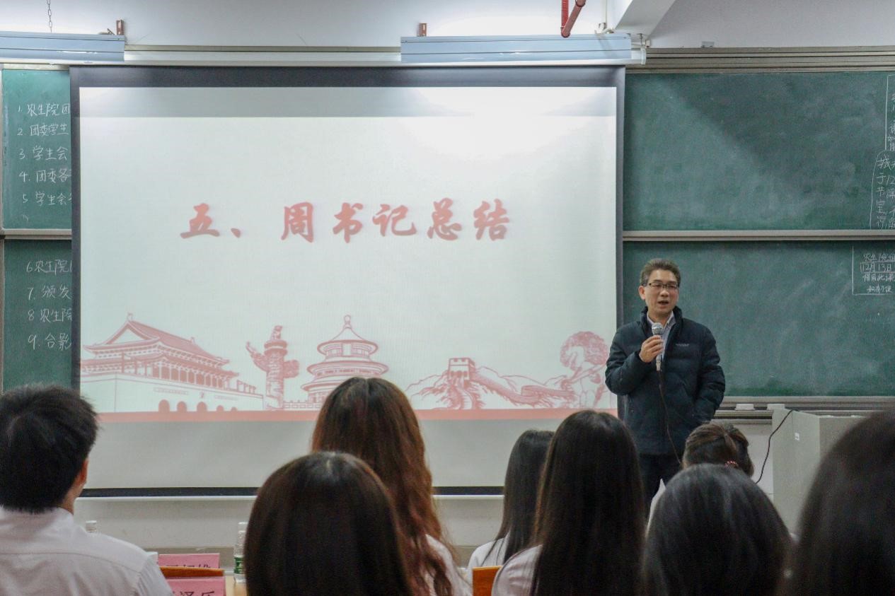最后,周超雄进行总结发言。他从三个方面对团学干部提出要求。第一,责任方面。团学干部们要充分发挥中间纽带的作用,明确自己加入团学组织的初心。学生干部之间要相互配合、相互理解,共同奋斗,争取进入广东省优秀团学行列;第二,学习方面。要加强思想政治理论学习,摒弃落后思想,做先进思想的传承者。他希望同学们勤学好问,学习高效的工作方法,找到工作与学习之间的平衡点,争取做榜样示范者;第三,生活方面。要坚持锻炼,保持良好的身体素质,为将来做出更大的贡献打下坚实的基础,并且要提高自身安全意识,做到自律自省,及时抵制不良诱惑。最后,周超雄希望学生干部们能时刻牢记奋斗目标,保持奋斗的热情和优良的作风,争取我院团学在评比中再创佳绩!