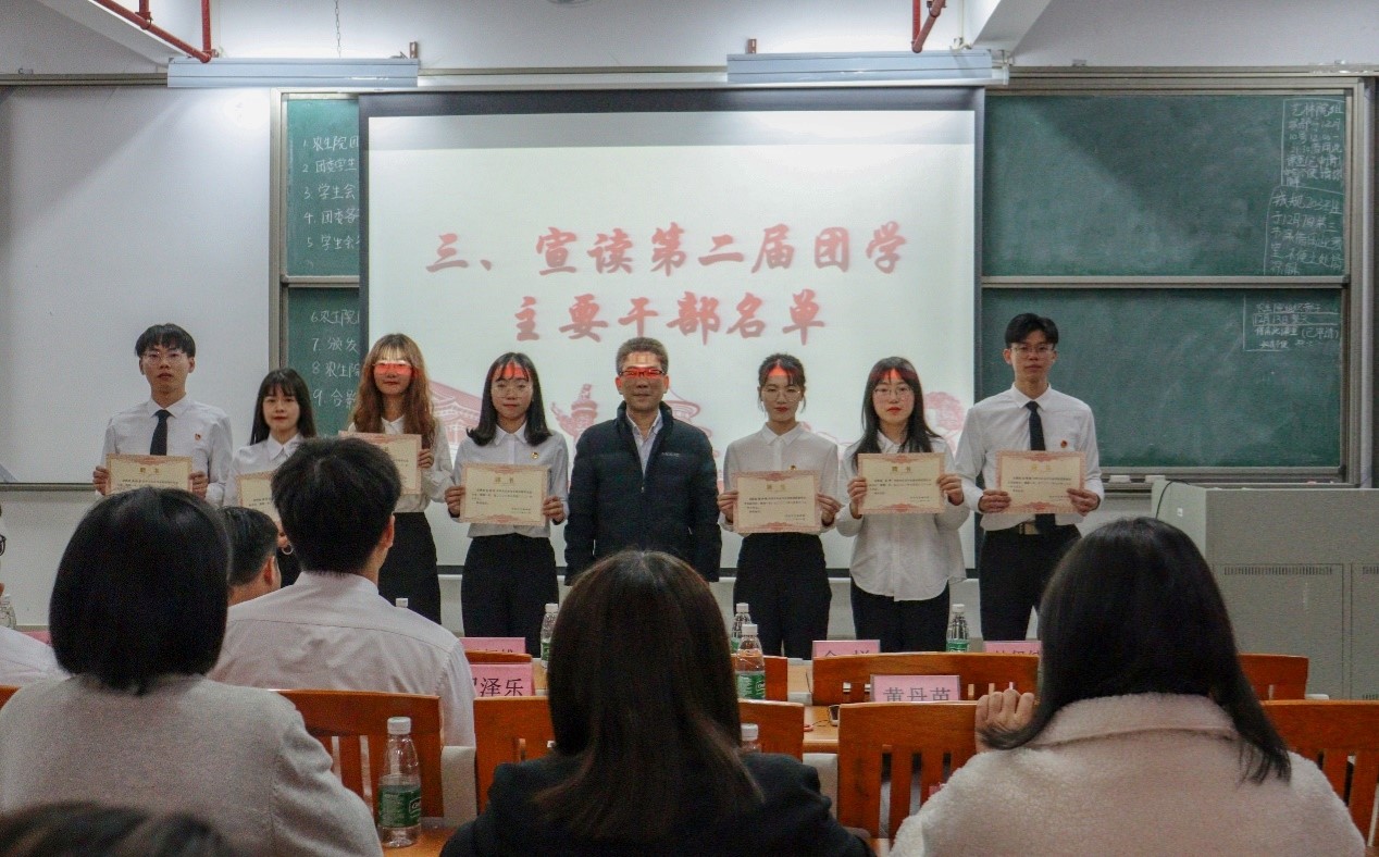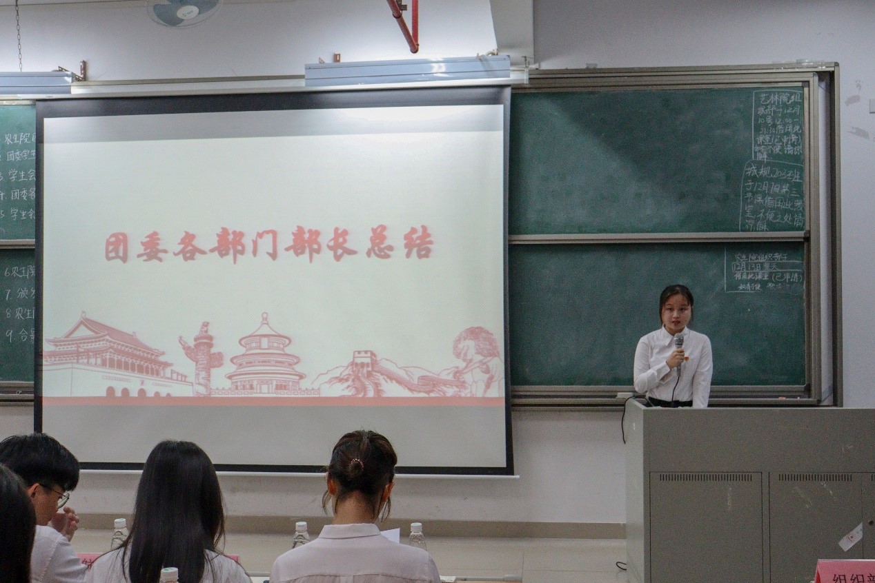 接着由林伊纯同学上台发言,她从组织建设和校园文化活动两个方面介绍了工作中取得的成绩和存在的不足。随后由学生会执行主席区涣彩从学生会职责以及各部门在活动中的表现进行工作总结并对自己未来的工作提出要求。紧接着,由团委办公室、组织部、宣编部、新闻媒体部、实践调研部、易班工作站、青协以及学生会班委部、学业部、心理与健康服务部、文体部、公关部的代表们依次上台发言,他们对近期本部门的工作内容做了详细汇报,并指出了工作中所取得的成绩和存在的不足之处,此外,他们还讲述了12月的工作计划和展望。各部门负责人的总结发言后,苏登宣读了第二届团学组织主要干部名单,学院党总支副书记周超雄和苏登为主要干部颁发聘书。