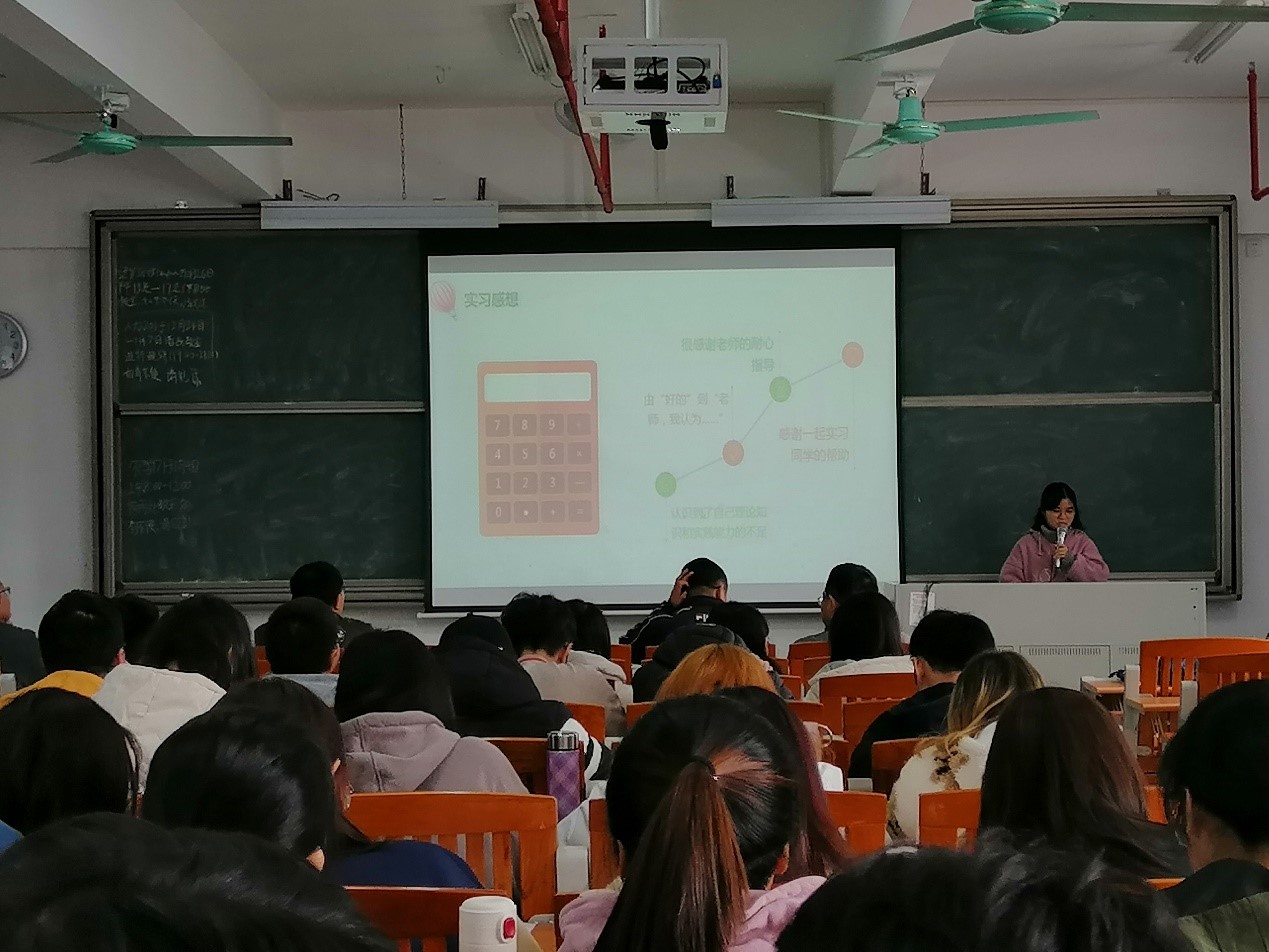 随后,按照要求,同学们以实习科室为小组进行了实习总结汇报,共有18个小组。各小组分别从日常工作、学习、生活和实习心得等方面进行了汇报,同学们普遍反映虽然实习部分环节很枯燥,但经过一阶段的适应和锻练以后,他们发现所有的付出都是为了后面更多的收获,在实习单位他们学习到了很多课本外和学校没有接触的知识,扩展了知识面,此外,本学期实习没有吃住后顾之忧,能够更全身心投入学习中去。
