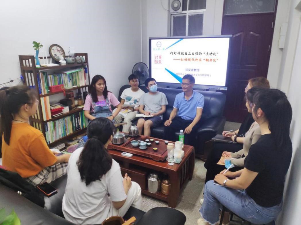 紧接着,郑奕雄院长围绕中央一号文件有关“种业”论述和要求,结合广东现代种业现状为同学们进行深入的讲授与分析,引导学生寻找广东现代种业“卡脖子”问题,让同学们更加准确理解打好现代种业“翻身仗”的紧迫性和重要性,进而又给同学们传授了如何更好地打赢“翻身仗”的对策和建议,为大家更好地学习掌握现代种业前沿知识打下坚实的基础。