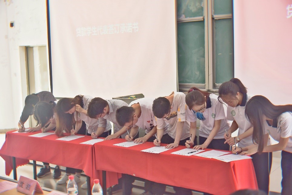 会上,学生代表还分享了诚信教育知识和提前还款经验,办理校园地国家助学贷款毕业生代表还现场签署了诚信还款承诺书。