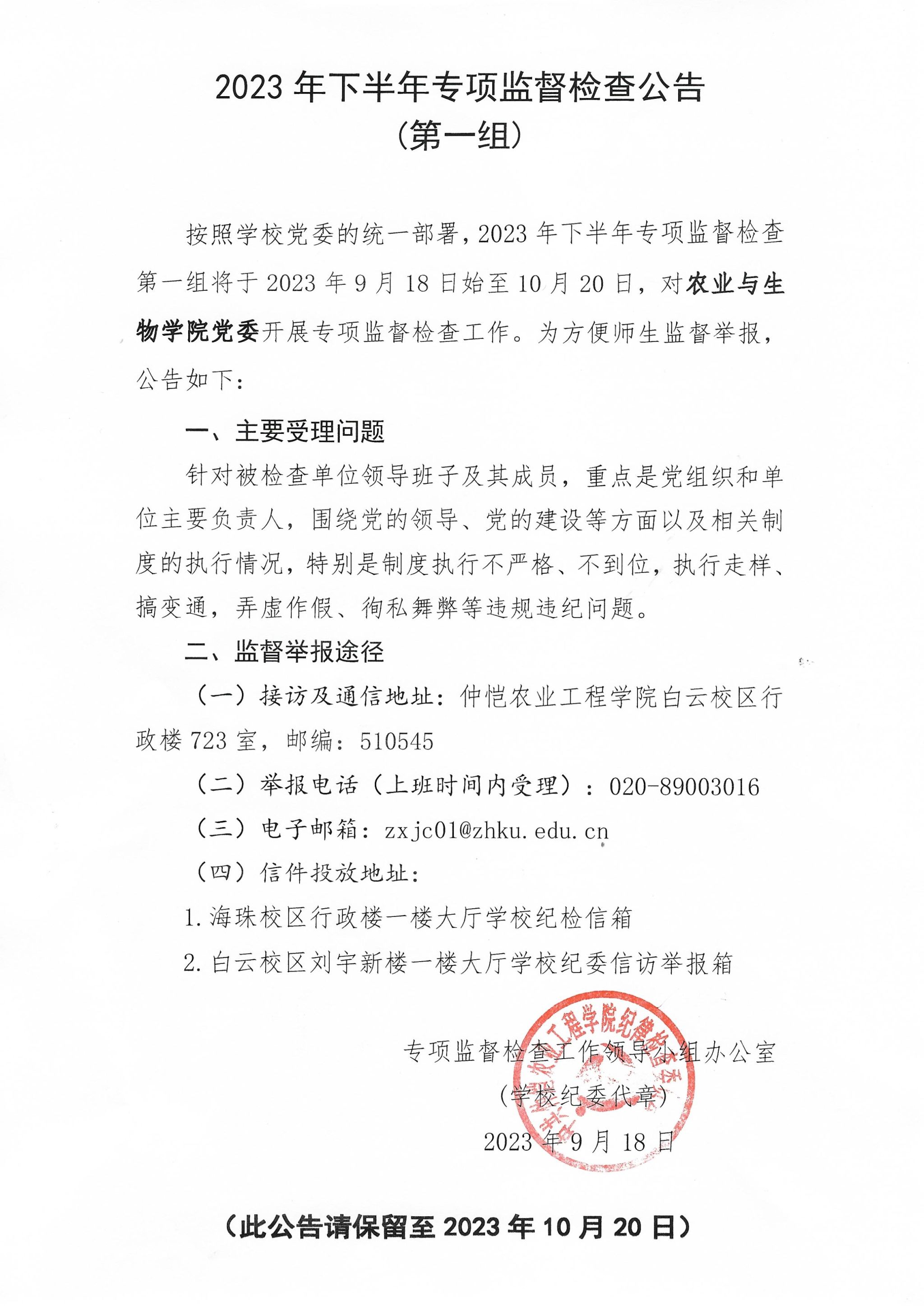 2023年下半年专项监督检查公告