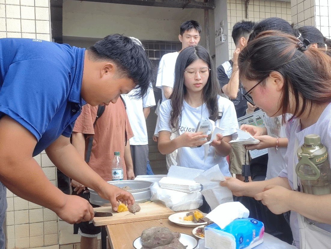 参观之余,工作人员还为师生们准备了热气腾腾的烤甘薯。大家品尝着不同品种的甘薯,感受着它们独特的口感与风味,更加深刻地体会到了丰收的喜悦和种质资源多样性的魅力。