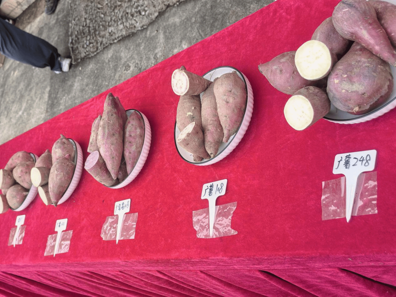 专家们还现场介绍了多种新品种甘薯,如叶菜型甘薯新品种“广薯菜2号”、蔬菜专用型抗病甘薯新品种“广菜薯5号”,以及富含花青素的“广紫薯2号”等,详细讲解了这些新品种的特点及其对农业产业的推动作用。师生们听得入神,纷纷表示对甘薯种质资源有了更深的理解和认识。