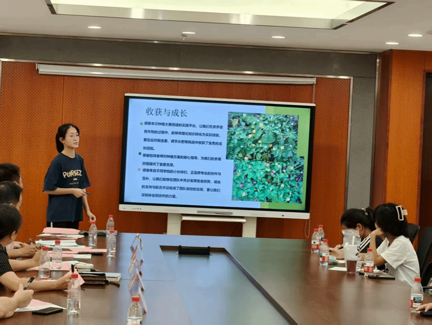 在成果汇报环节,各参赛队伍依次上台,围绕制定种植方案、作物品种选育、智能水肥管理、数字化数据分析处理等进行汇报。汇报全面展示从方案设计到田间实施的种植全过程,充分体现参赛队伍扎实的专业素养、良好的实践能力以及对大赛的全心投入。
