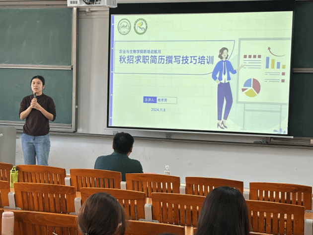 为提高学生在秋招时的竞争力及优化自身简历,11月8日下午,我院在教学楼②510室开展秋招求职简历撰写技巧培训讲座。讲座由辅导员肖芳芳主讲,参加此次讲座的有辅导员李城和我院各级学生。