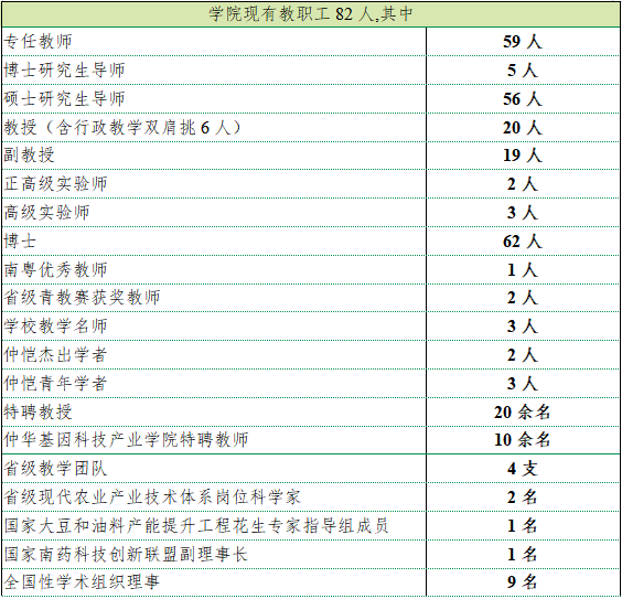 人才培养特色鲜明 开门开放办学,注重协同育人 学院与新西兰林肯大学、华中农业大学、广东省农业科学院、广东省科学院、深圳华大基因研究院、广东凯普生物科技股份有限公司等国内外高等院校、科研院所和知名企业建立了较为稳定的交流与合作关系,为推动师生对外交流合作奠定了良好的基础。